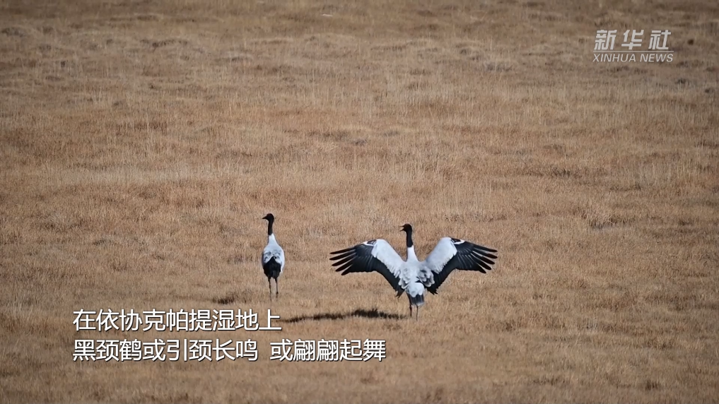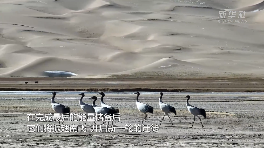 随着高原气温逐渐变冷,在新疆阿尔金山国家级自然保护区,黑颈鹤吹响“集结号”,准备南迁。