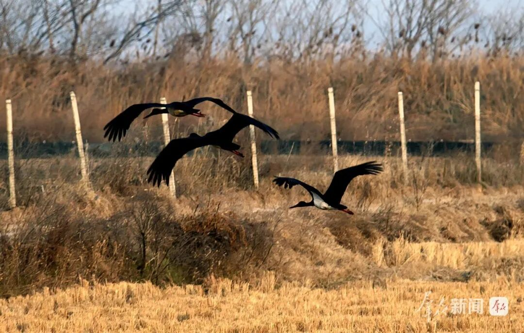国家一级保护鸟类黑鹳飞回昔日栖息水域。