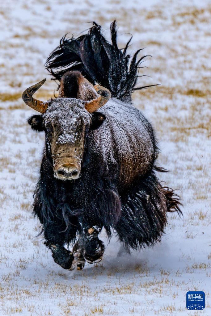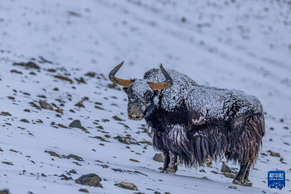 4月9日在“巴毛穷宗”地区拍摄的野牦牛。新华社记者 姜帆 摄